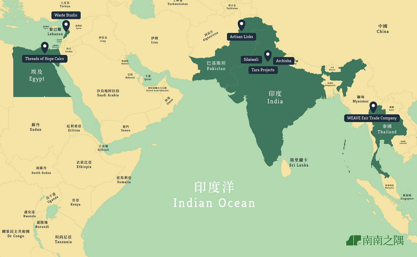 每個來自MADE51的作品,都仔細標上製作地、工藝師母國,以及在地合作的社會企業夥伴等資訊,讓南南深切感受到,它們經歷了種種流離與遷徙,才終於來到我們手上,也邀請大家細讀這些工藝背後的故事。