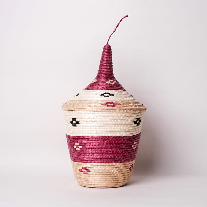 Agaseke 最有特色的,就是那帶有尖蓋的造型,適合用來盛裝或攜帶食物,也象徵著豐收與富足。在盧安達,這些手工香草籃不僅進入家庭,更成為國徽上的重要元素,傳遞出珍惜和平、走向團結的精神。